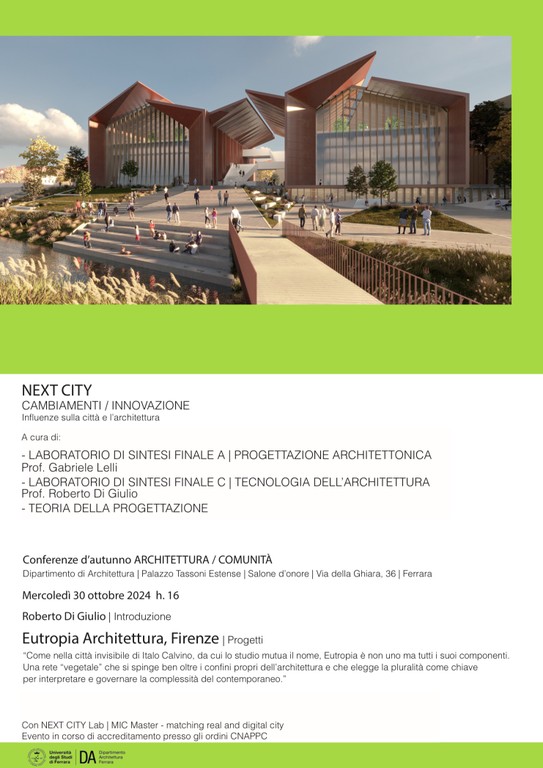 - Introduzione di Roberto Di Giulio A cura di Next City Lab | Laboratori di Sintesi Finale A e C | Corso di Teoria della Progettazione